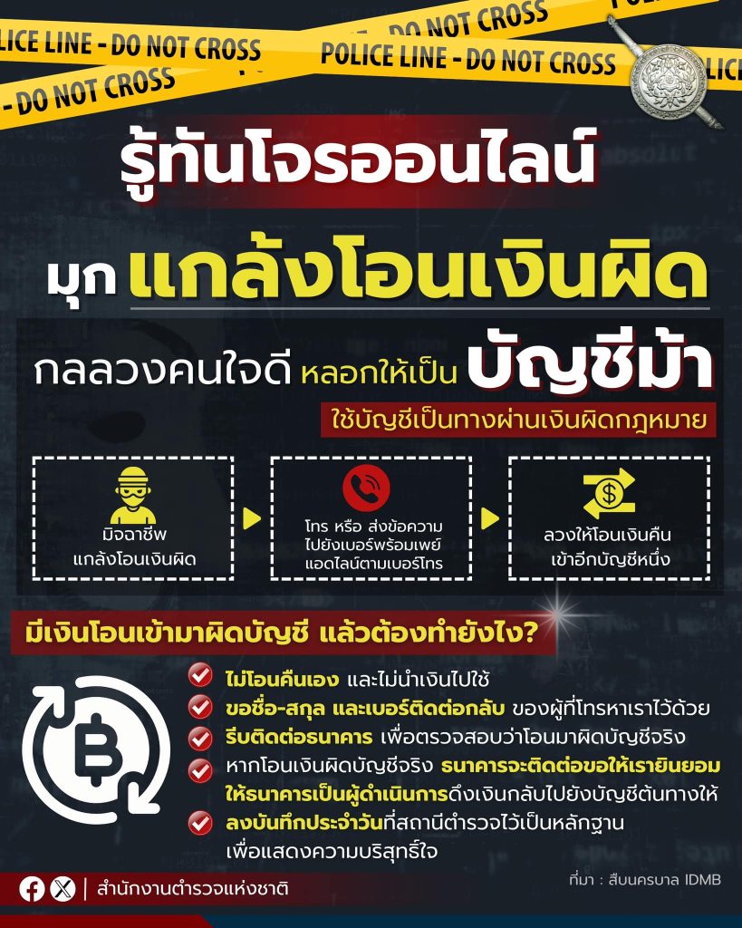 มิจฉาชีพแกล้งโอนเงินผิด