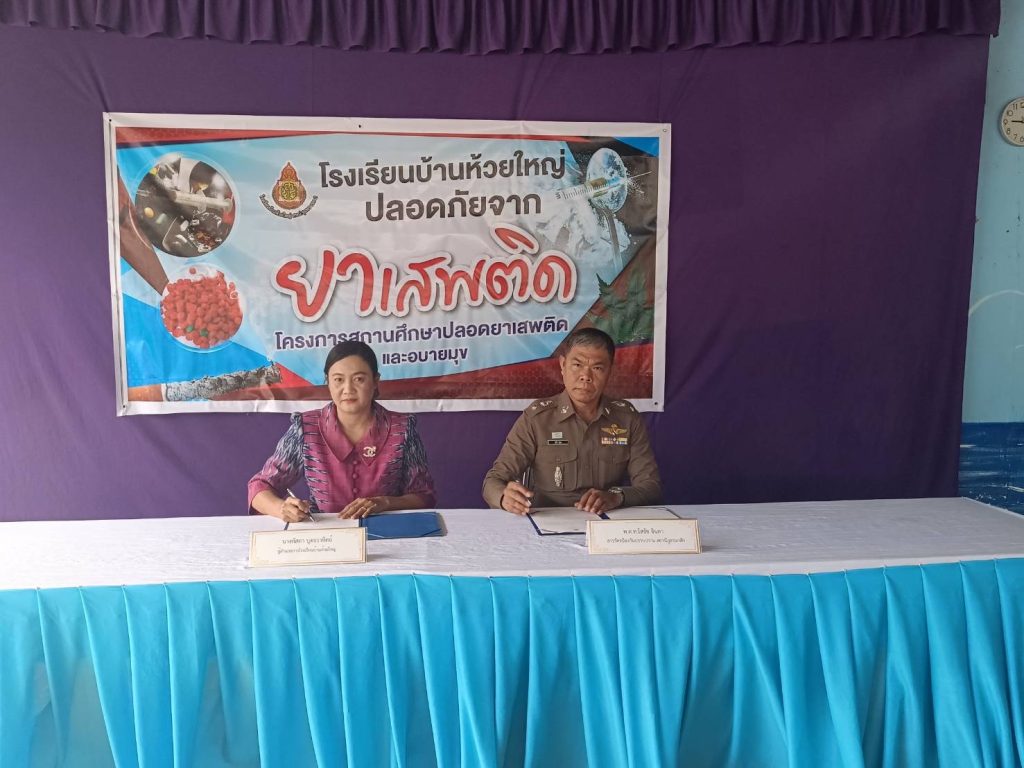 เมื่อวันที่ 21 ธันวาคม 2566 เวลา 09.00 – 11.00 น. พ.ต.อ.จักรา เสาวคนธ์ ผกก.สภ.นาสัก ได้มอบหมายให้ พ.ต.ท.โสรัช จินดา สวป.สภ.นาสัก พร้อมด้วย ร.ต.ท.ธนพล บุญทรง รอง สว.(ป.)สภ.นาสัก , ส.ต.อ.สราวุธ กายสะอาด ผบ.หมู่(ป.)สภ.นาสัก เข้าร่วมพิธีเปิดโครงการรณรงค์ป้องกันและแก้ไขปัญหายาเสพติดในโรงเรียน โดยบรรยายให้ความรู้เกี่ยวกับโทษของยาเสพติด และร่วมลงนาม MOU ภาคีเครือข่ายต่อต้านยาเสพติด ณ โรงเรียนบ้านห้วยใหญ่ ต.นาสัก อ.สวี จ.ชุมพร