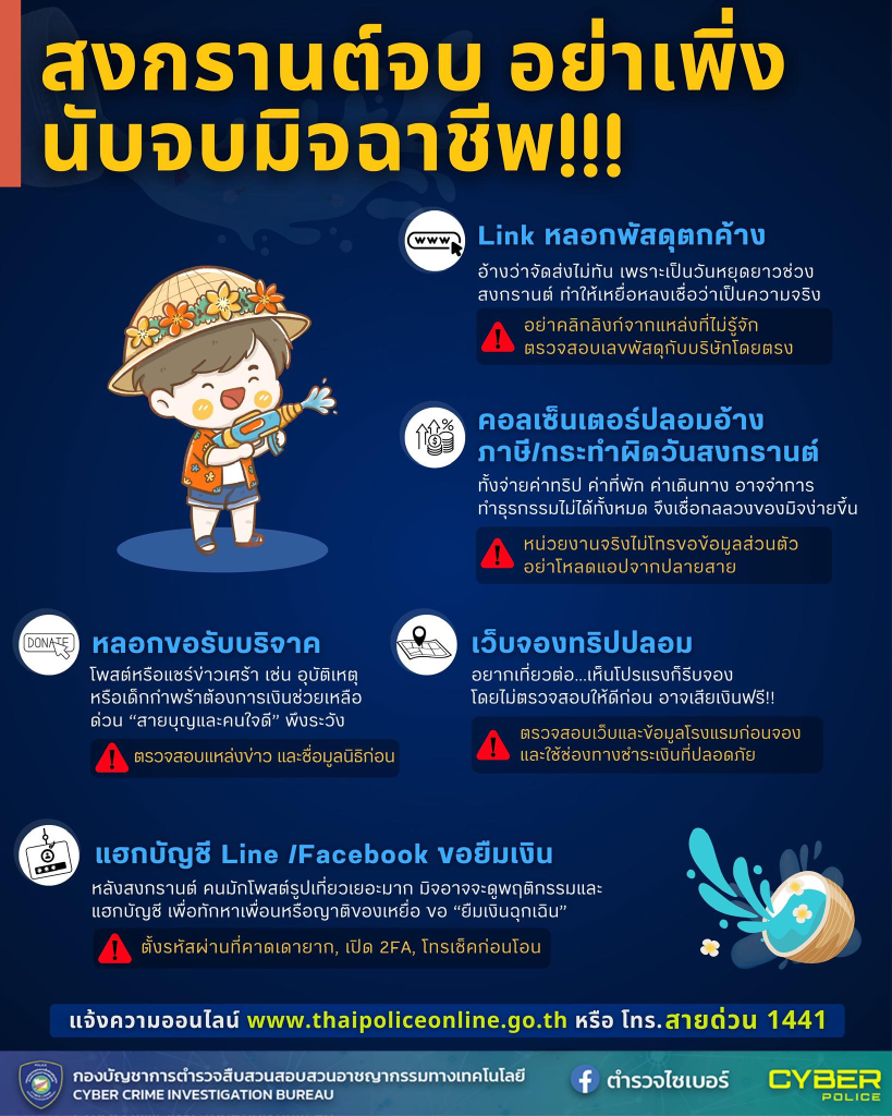 ตำรวจไซเบอร์เตือนภัย สงกรานต์จบ อย่าเพิ่งนับจบมิจฉาชีพ!!!